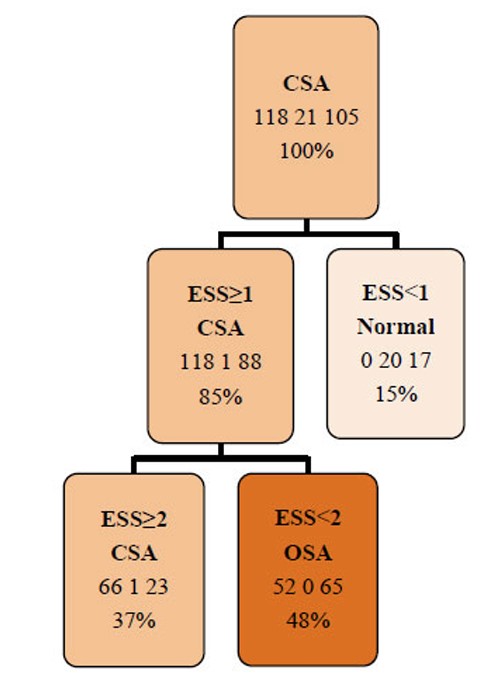 In recent years, most epidemiological evidence has focused on OSA, leaving CSA comparatively underexplored. Moreover, although EDS is a common symptom in both OSA and CSA, its predictive value for distinguishing between apnea types has not been adequately investigated. Identifying whether EDS can serve as a practical predictor could enhance clinical screening and prioritization of polysomnographic studies in resource-limited settings.
